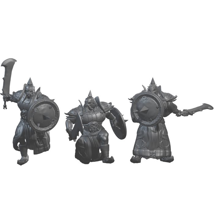 Outnumbering their Ogre cousins by nearly thirty to one, the Orc Swordsmen are the mainstay of the Blackblood army. Bedecked in bright robes and armor and possessed of a vile temper, the Orc Swordsmen are known for their cruel torture of the wounded and their maiming battle practices. It is often said in the lands of the Firstborn: "Better to bleed to death slowly on the battlefield than ask for succor from the Orcs".Images
