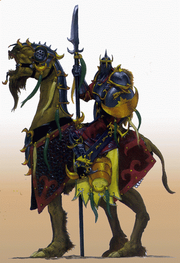Of all the natural beasts that populate Chronopia, the Kutara is one of the most foul tempered animals in all the realms. In fact, the Kutara is second only to Ripper Beasts in sheer brutality, though they make up for this with their superior strength and stamina. It is this very stamina that allows Kutaras to be excellent mounts for long-distance campaigns. They are slow to tire and require infrequent meals, though when they do eat it is in large quantity. When mounted with an Orc rider, these beasts make excellent cavalry.Images