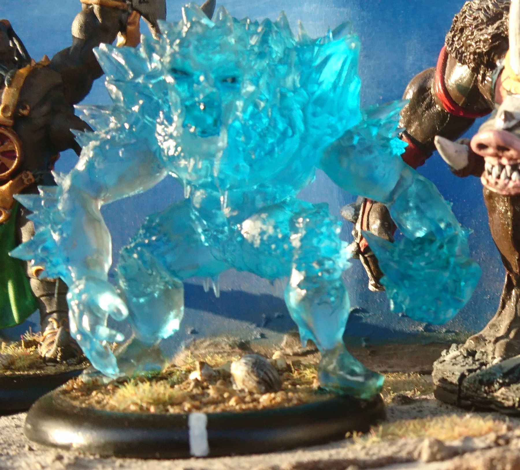 Abstract: A figure with game material. The regular version of the Elemental produced in blue clear-sighted resin, which was exclusively available in the first Kickstarter.