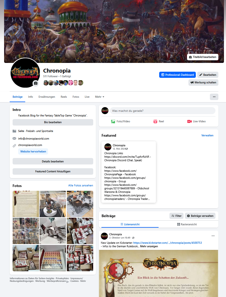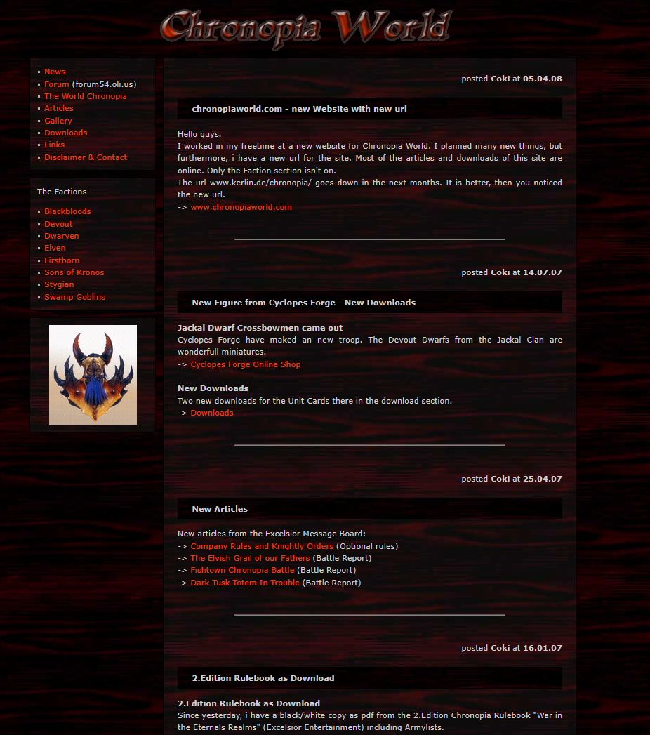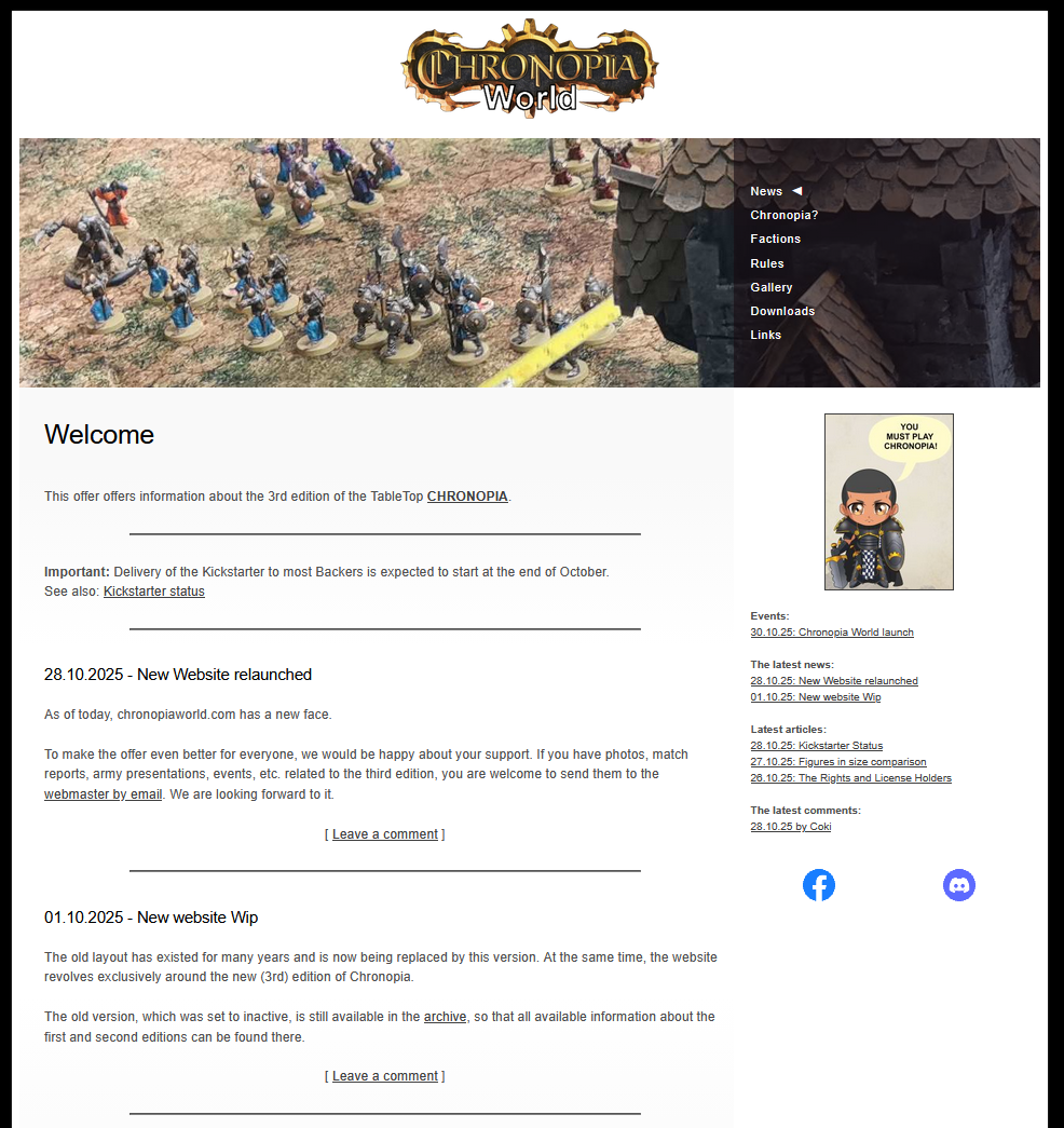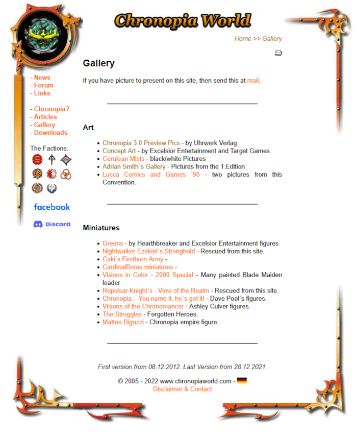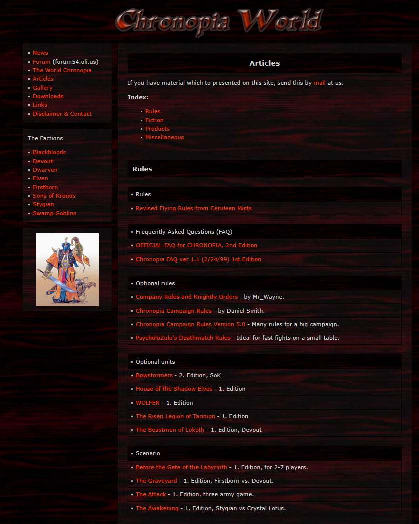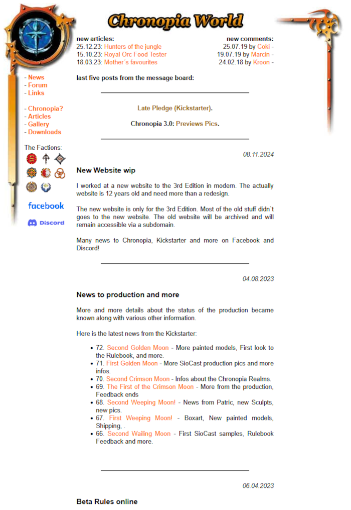 Over time, many articles have gone online on both Chronopia Deutschland (1156x) and Chronopia World (587x). Tens of thousands of files, especially images and downloads, are or were available to the visitor. Special projects such as the extensive product databases, but also the game values for each character/unit have cost enormous work and time.