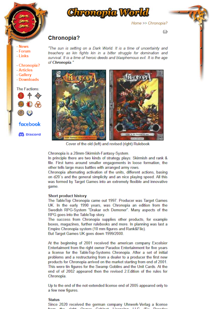Overall, both websites are a good place to start when it comes to material for the 1st and 2nd editions of Chronopia. For this reason, I have decided to continue offering this version. For this purpose, the actual websites were spidered and uploaded as HTML variants without further functions, i.e. purely in read mode, in extra archive domains (https://archiv.chronopia.de/ and https://archive.chronopiaworld.com/).