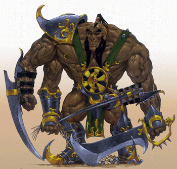 Of all the major races of the Blackblood Empire, the most enigmatic and devastating are the Trolls. Possessing strength superior to the Ogres and speed to match the Orcs, Trolls are a source of great pride to the Blackblood army. Trolls epitomize all the warrior qualities the Iron Code extols. While normally considerably calmer than other Blackbloods, Trolls are terrifying combatants, wielding devastating power with four arms. Many arm themselves with wicked blades that are extended from massive gauntlets, while others wield nets and two-handed falchions.Because of their superior strength and multitude of appendages, Trolls will often engage in close combat with multiple attackers and seem completely at ease doing so. Fortunately Trolls do not seem to be present in every Blackblood force and are often held in reserve for larger engagements. It is said by those that have faced the Blackbloods in war that the importance the Blackbloods´ place on an engagement can be measured by the number of Trolls that join the battle.