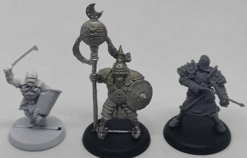 Both photos show figures of the Devouts, with the new model shown on the left and the old variant on the right.