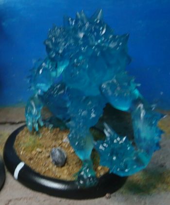 Abstract: A figure with game material. The regular version of the Elemental produced in blue clear-sighted resin, which was exclusively available in the first Kickstarter.