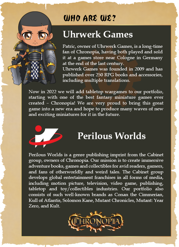Dear Backer,the following update is directed specifically at our German speaking supporters, as it concerns the German edition of the Chronopia Rulebook.