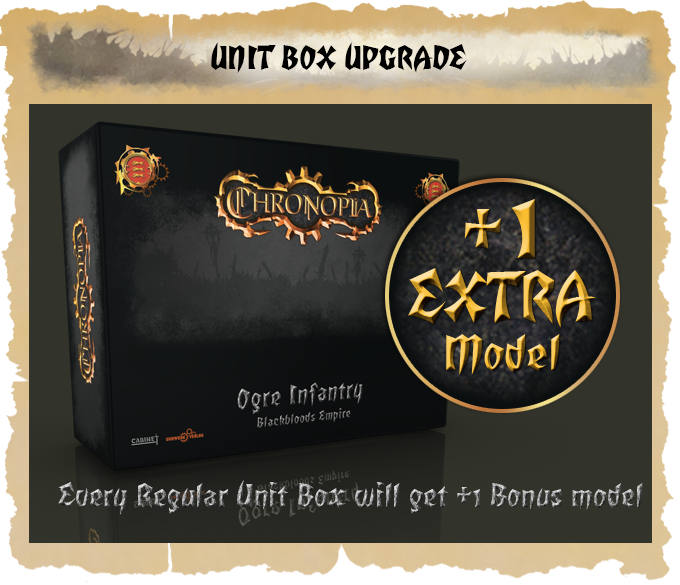 After some calculations we have decided to add 1 extra model to each regular unit box keeping exactly the same price. That is not all! As you can see the 1st Stretch Goal will increase that number to +2 models in a box makes it even more attractive. So share our Campaign on social media and tell your friends about it, because Chronopia is BACK!