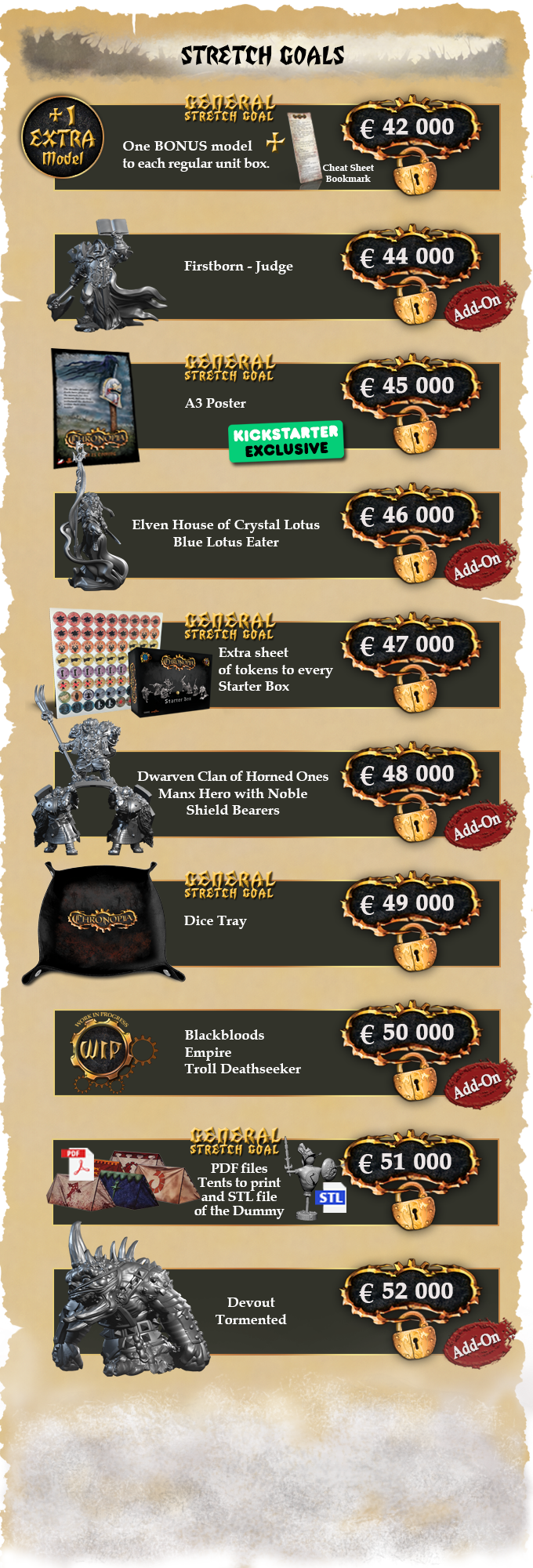 As a disclaimer, we remind you that this extra content will be applicable only for the duration of this KS campaign, as a way of us saying a big "thank you" for supporting our dream come true. In future iterations of the miniature lines, they will include the initial number of minis.