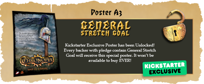 - 45K - Every backer with Pledge containing General Stretch Goals will receive a Kickstarter Exclusive poster of Chronopia (A3 size).