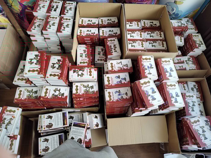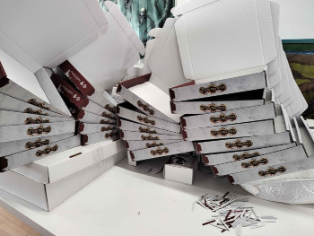 As for the fruits of our craft—the miniatures—the time is nigh. In the industrious lands of our German stronghold, the great work has begun: boxes are being assembled, each a treasure hoard destined for your hands. Behold the images below, glimpses into the labour of our artisans.